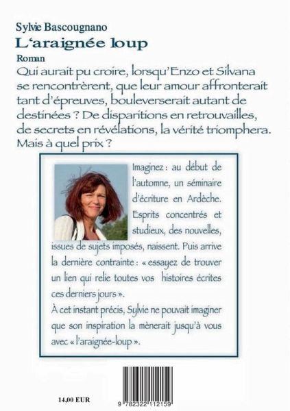 Sylvie vit dans une petite ville du sud de la France. Sans grande prétention, elle s¿est inscrite un jour à un atelier d¿écriture dans le but de laisser une trace de sa vie à ses petits-enfants. Mais très vite son imagination a pris le dessus. Elle a laissé de côté ses souvenirs d¿enfance pour s¿investir dans sa nouvelle passion. Après avoir effectué un séminaire d¿écriture elle nous livre son premier roman : l¿araignée loup.