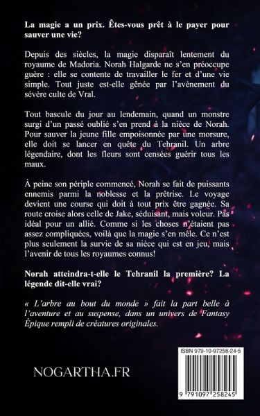 La magie disparaît du royaume de Madoria et ses derniers pratiquants sont activement pourchassés. Norah est forgeronne, ne connaît rien à la magie et s'en moque. Jusqu'au jour où elle doit se lancer en quête d'un arbre légendaire, pour sauver sa nièce empoisonnée. Un voyage qui la changera pour toujours.