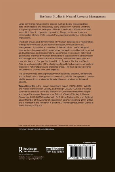 This book argues and demonstrates why human dimensions of relationships to large carnivores are crucial for their successful conservation and management. It provides an overview of theoretical and methodological perspectives, heterogeneity in stakeholder perceptions and behaviour as well as developments in decision making, stakeholder involvement, policy and governance informed by human dimensions of large carnivore conservation and management. The scope is international, with detailed examples and case studies from Europe, North and South America, Central and South Asia, as well as debates of the challenges faced by urbanization, agricultural expansion, national parks and protected areas. The main species covered include bears, wolves, lynx, and leopards.