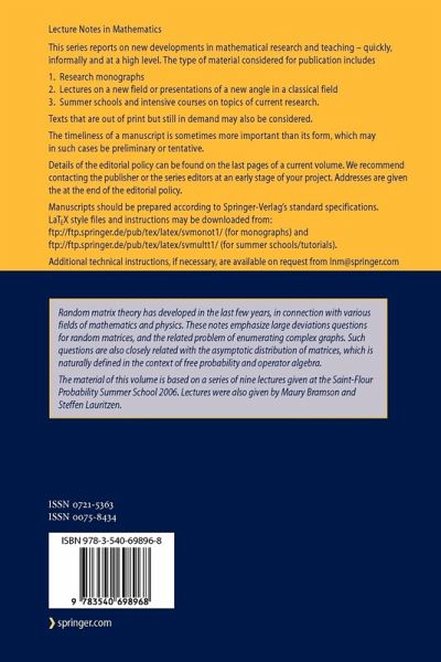 From the reviews: "This book is a set of lecture notes on eigenvalues of large random matrices. ... useful to all mathematicians and statisticians who are interested in Wigner matrices. ... In summary, the book is very much worth perusal." (Vladislav Kargin, Mathematical Reviews, Issue 2010 d)
