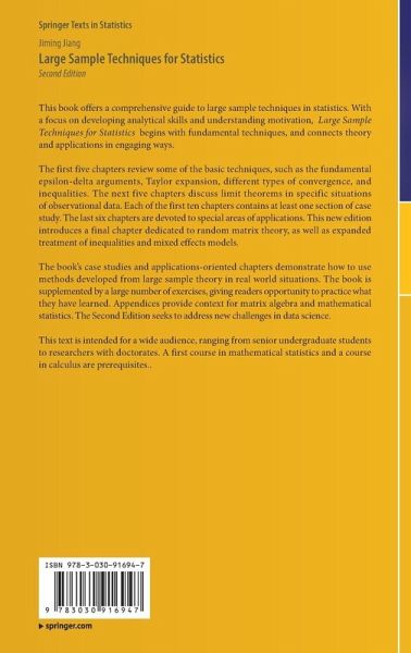 "Jiming Jiang's book on large sample techniques is a very welcome addition to the literature. Its strong points include the breadth of covered material, choice of relevant and interesting topics, lucid and attractive style of presentation, and sound pedagogical aspects. ... Along with its excellent coverage of the fundamentals in its initial chapters, the book addresses a number of important topics in the latter half as well. ... All in all, Large Sample Techniques in Statistics is an excellent book that I recommend whole-heartedly." (Moulinath Banerjee, Journal of the American Statistical Association, Vol. 106 (496), December, 2011)