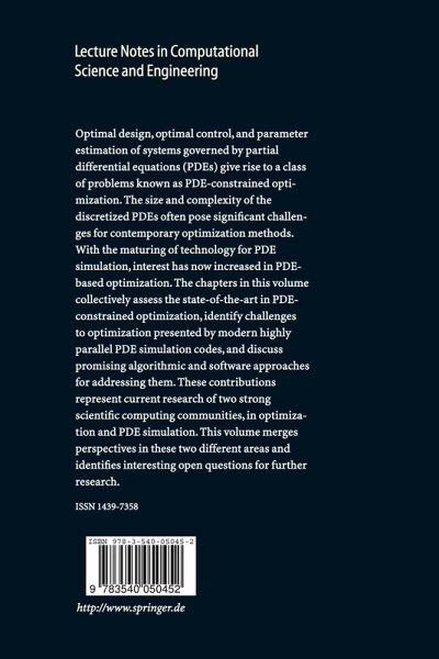 Optimal design, optimal control, and parameter estimation of systems governed by partial differential equations (PDEs) give rise to a class of problems known as PDE-constrained optimization. The size and complexity of the discretized PDEs often pose significant challenges for contemporary optimization methods. With the maturing of technology for PDE simulation, interest has now increased in PDE-based optimization. The chapters in this volume collectively assess the state of the art in PDE-constrained optimization, identify challenges to optimization presented by modern highly parallel PDE simulation codes, and discuss promising algorithmic and software approaches for addressing them. These contributions represent current research of two strong scientific computing communities, in optimization and PDE simulation. This volume merges perspectives in these two different areas and identifies interesting open questions for further research.