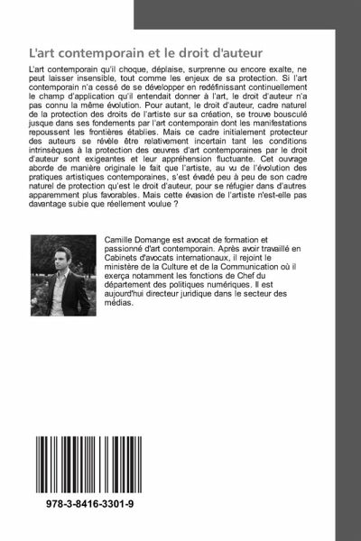 L'art contemporain qu'il choque, déplaise, surprenne ou encore exalte, ne peut laisser insensible, tout comme les enjeux de sa protection. Si l'art contemporain n'a cessé de se développer en redéfinissant continuellement le champ d'application qu'il entendait donner à l'art, le droit d'auteur n'a pas connu la même évolution. Pour autant, le droit d'auteur, cadre naturel de la protection des droits de l'artiste sur sa création, se trouve bousculé jusque dans ses fondements par l'art contemporain dont les manifestations repoussent les frontières établies. Mais ce cadre initialement protecteur des auteurs se révèle être relativement incertain tant les conditions intrinsèques à la protection des uvres d'art contemporaines par le droit d'auteur sont exigeantes et leur appréhension fluctuante. Cet ouvrage aborde de manière originale le fait que l'artiste, au vu de l'évolution des pratiques artistiques contemporaines, s'est évadé peu à peu de son cadre naturel de protection qu'est le droit d'auteur, pour se réfugier dans d'autres apparemment plus favorables. Mais cette évasion de l'artiste n'est-elle pas davantage subie que réellement voulue ?