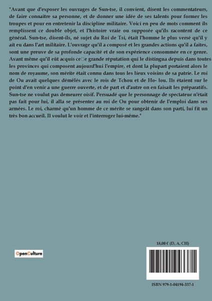 *L'Art de la Guerre" de Sun Tzu est un classique intemporel qui explore les stratégies et tactiques de la guerre, qui trouvent des applications modernes non seulement en conflit militaire, mais aussi dans les domaines de leadership, gestion d'entreprise, et développement personnel. Rédigé par le général chinois et stratège militaire Sun Tzu, cet ouvrage est un must-read pour toute personne souhaitant maîtriser l¿art de la stratégie. L'une des notions fondamentales de "L'Art de la Guerre" est la connaissance de soi et de l¿ennemi. Sun Tzu insiste sur l¿importance de connaître ses propres forces et faiblesses ainsi que celles de l¿adversaire. Ce concept est encore applicable aujourd¿hui dans la gestion de projet, la prise de décision, et les négociations d'affaires. Une autre idée clé est la flexibilité stratégique. Sun Tzu enseigne que la victoire est atteinte par la capacité d¿adapter sa stratégie en fonction des circonstances, tout en maintenant un objectif clair. Cette pensée est pertinente dans l¿innovation en entreprise, où la capacité à pivoter est essentielle pour répondre aux tendances du marché et aux besoins des consommateurs. Sun Tzu parle également de l'importance de la planification. Selon lui, la planification minutieuse est essentielle pour prévoir les difficultés et assurer le succès. Ce principe est crucial dans le management moderne où la planification stratégique, la gestion des risques et l¿allocation efficace des ressources sont des compétences clés. L'ouvrage met en évidence l'importance du terrain et de l'environnement dans les stratégies militaires, ce qui peut être interprété métaphoriquement dans le monde des affaires comme l'importance de comprendre l'environnement concurrentiel et le positionnement de marché. L¿ouvrage aborde aussi l¿usage de la ruse et de la tromperie. Sun Tzu soutient que tromper l¿ennemi est souvent la clé de la victoire. Cela peut être extrapolé aux stratégies de marketing où la différenciation de marque et les campagnes de publicité innovantes peuvent créer une illusion de supériorité.