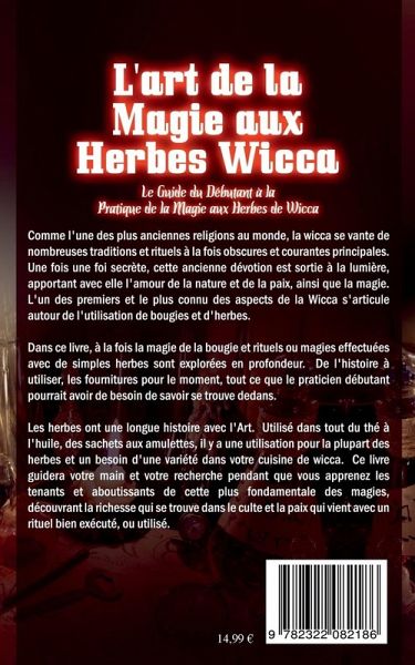 Comme l'une des plus anciennes religions au monde, la wicca se vante de nombreuses traditions et rituels à la fois obscures et courantes principales. Une fois une foi secrète, cette ancienne dévotion est sortie à la lumière, apportant avec elle l'amour de la nature et de la paix, ainsi que la magie. L'un des premiers et le plus connu des aspects de la Wicca s'articule autour de l'utilisation de bougies et d'herbes.Dans ce livre, à la fois la magie de la bougie et rituels ou magies effectuées avec de simples herbes sont explorées en profondeur. De l'histoire à utiliser, les fournitures pour le moment, tout ce que le praticien débutant pourrait avoir de besoin de savoir se trouve dedans.Les herbes ont une longue histoire avec l'Art. Utilisé dans tout du thé à l'huile, des sachets aux amulettes, il y a une utilisation pour la plupart des herbes et un besoin d'une variété dans votre cuisine de wicca. Ce livre guidera votre main et votre recherche pendant que vous apprenez les tenants et aboutissants de cette plus fondamentale des magies, découvrant la richesse qui se trouve dans le culte et la paix qui vient avec un rituel bien exécuté, ou utilisé.