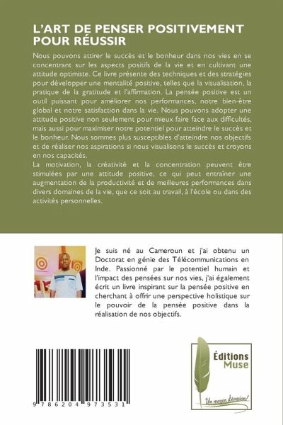 Nous pouvons attirer le succès et le bonheur dans nos vies en se concentrant sur les aspects positifs de la vie et en cultivant une attitude optimiste. Ce livre présente des techniques et des stratégies pour développer une mentalité positive, telles que la visualisation, la pratique de la gratitude et l'affirmation. La pensée positive est un outil puissant pour améliorer nos performances, notre bien-être global et notre satisfaction dans la vie. Nous pouvons adopter une attitude positive non seulement pour mieux faire face aux difficultés, mais aussi pour maximiser notre potentiel pour atteindre le succès et le bonheur. Nous sommes plus susceptibles d'atteindre nos objectifs et de réaliser nos aspirations si nous visualisons le succès et croyons en nos capacités. La motivation, la créativité et la concentration peuvent être stimulées par une attitude positive, ce qui peut entraîner une augmentation de la productivité et de meilleures performances dans divers domaines de la vie, que ce soit au travail, à l'école ou dans des activités personnelles.
