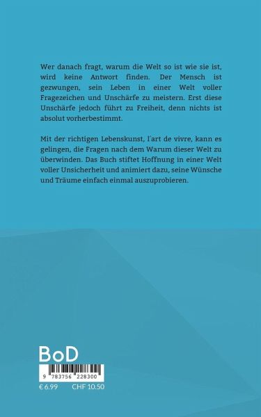 Wer danach fragt, warum die Welt so ist wie sie ist, wird keine Antwort finden. Der Mensch ist gezwungen, sein Leben in einer Welt voller Fragezeichen und Unschärfe zu meistern. Erst diese Unschärfe jedoch führt zu Freiheit, denn nichts ist absolut vorherbestimmt. Mit der richtigen Lebenskunst, l´art de vivre, kann es gelingen, die Fragen nach dem Warum dieser Welt zu überwinden. Das Buch stiftet Hoffnung in einer Welt voller Unsicherheit und animiert dazu, seine Wünsche und Träume einfach einmal auszuprobieren.