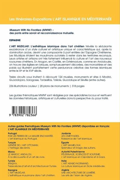 L'esthétique islamique dans l'art chrétien révèle la séduisante exubérance d'un style culturel et artistique unique et caractéristique qui, après la domination arabe, devint une composante à part entière de l'Espagne Chrétienne. Les Mudéjars étaient les musulmans autorisés à rester dans les territoires reconquis. Leurs artistes et artisans ont très fortement influencé la culture et l'art des nouveaux royaumes chrétiens. En Aragon, en Castille, en Extrémadure, comme en Andalousie, on trouve des églises en briques, somptueusement décorées, des monastères et des palais qui illustrent parfaitement cette perdurance créative des formes islamiques entre le XIe et le XVIe siècle. Treize circuits vous invitent à découvrir 124 musées, monuments et sites à Madrid, Guadalajara, Saragosse, Tordesillas, Tolède, Guadalupe et Séville (entre autres). Cet ouvrage fait partie de la collection "L'Art islamique en Méditerranée". Chaque titre de cette collection comporte une introduction générale identique pour tous les titres, suivie d'une introduction spécifique au titre en question. Pour la version eBook / Kindle : le lien "Look Inside" donne accès à la table des matières de ce titre et à une partie de son introduction spécifique. Pour la version livre de poche : le lien "Look Inside" donne accès à l'introduction générale. À noter : le livre électronique inclut un index des noms des lieux. Recherchez d'autres titres de cette série disponibles en français ou anglais avec 'L'art islamique en Méditerranée + MWNF' (neuf titres) ou 'Islamic art in the Mediterranean + MWNF' (dix titres). Recherchez tous les titres de Museum With No Frontiers dans toutes les langues avec 'Museum With No Frontiers + MWNF'.