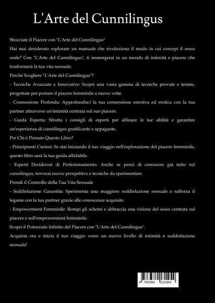 Ti sei mai chiesto cosa significhi veramente soddisfare una donna? In "L'Arte del Cunnilingus", ti immergerai in un mondo di piacere e intimità come mai prima d'ora. Con una combinazione di tecniche esperte e approcci sensibili, questo libro è molto più di una guida pratica al sesso orale. È un invito a esplorare la profondità della connessione umana, a comprendere i desideri nascosti del corpo femminile e a celebrare il piacere in tutte le sue forme. Che tu sia un principiante curioso o un amante esperto desideroso di approfondire le proprie conoscenze, "L'Arte del Cunnilingus" offre una prospettiva nuova e avvincente sul sesso e sull'intimità. È il momento di abbracciare il potere del piacere femminile e di portare la tua vita sessuale a nuove altezze di soddisfazione e comprensione. Prendi il controllo della tua vita sessuale e scopri il potenziale infinito del piacere con "L'Arte del Cunnilingus".Incluso nel libro una intera sezione Bonus sull'Eiaculazione Precoce!