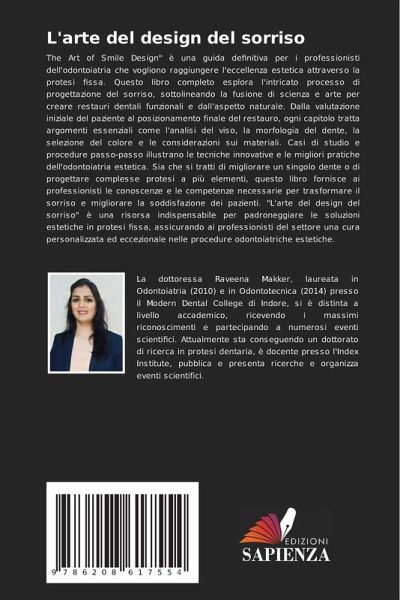 The Art of Smile Design" è una guida definitiva per i professionisti dell'odontoiatria che vogliono raggiungere l'eccellenza estetica attraverso la protesi fissa. Questo libro completo esplora l'intricato processo di progettazione del sorriso, sottolineando la fusione di scienza e arte per creare restauri dentali funzionali e dall'aspetto naturale. Dalla valutazione iniziale del paziente al posizionamento finale del restauro, ogni capitolo tratta argomenti essenziali come l'analisi del viso, la morfologia del dente, la selezione del colore e le considerazioni sui materiali. Casi di studio e procedure passo-passo illustrano le tecniche innovative e le migliori pratiche dell'odontoiatria estetica. Sia che si tratti di migliorare un singolo dente o di progettare complesse protesi a più elementi, questo libro fornisce ai professionisti le conoscenze e le competenze necessarie per trasformare il sorriso e migliorare la soddisfazione dei pazienti. "L'arte del design del sorriso" è una risorsa indispensabile per padroneggiare le soluzioni estetiche in protesi fissa, assicurando ai professionisti del settore una cura personalizzata ed eccezionale nelle procedure odontoiatriche estetiche.
