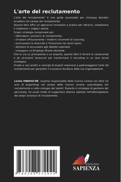 L'arte del reclutamento" è una guida essenziale per chiunque desideri eccellere nel campo del reclutamento.Questo libro offre un approccio innovativo e pratico per attrarre, selezionare e trattenere i migliori talenti.Scopri strategie comprovate per:- ottimizzare i processi di reclutamento;- sfruttare efficacemente i moderni strumenti di sourcing;- promuovere la diversità e l'inclusione nei vostri team;- allineare le assunzioni agli obiettivi aziendali;- sviluppare un Employer Brand attraente.Che tu sia un principiante o un esperto, questo libro ti fornirà le conoscenze e gli strumenti necessari per trasformare il recruiting in un vero asset strategico.Grazie a casi pratici e consigli di esperti imparerai a padroneggiare l'arte del reclutamento per garantire il successo duraturo della tua organizzazione.