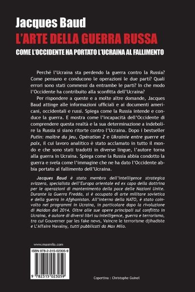 Perché l'Ucraina sta perdendo la guerra contro la Russia? Come pensano e conducono le operazioni le due parti? Quali errori sono stati commessi da entrambe le parti? In che modo l'Occidente ha contribuito alla sconfitta dell'Ucraina?Per rispondere a queste e a molte altre domande, Jacques Baud attinge alle informazioni ufficiali e ai documenti americani, occidentali e russi. Spiega come la Russia intende e conduce la guerra. E mostra come l'incapacità dell'Occidente di comprendere questa realtà e la sua determinazione a indebolire la Russia si siano ritorte contro l'Ucraina. Dopo i bestseller Putin: maître du jeu, Opération Z e Ukrainie entre guerre et paix, il cui lavoro analitico è stato acclamato in tutto il mondo e che sono stati tradotti in diverse lingue, l'autore torna alla guerra in Ucraina. Spiega come la Russia abbia condotto la guerra e svela come l'immagine che ne ha dato l'Occidente abbia portato al fallimento dell'Ucraina.