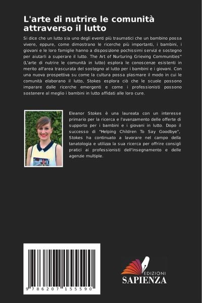 Si dice che un lutto sia uno degli eventi più traumatici che un bambino possa vivere, eppure, come dimostrano le ricerche più importanti, i bambini, i giovani e le loro famiglie hanno a disposizione pochissimi servizi e sostegno per aiutarli a superare il lutto. The Art of Nurturing Grieving Communities" (L'arte di nutrire le comunità in lutto) esplora le conoscenze esistenti in merito all'area trascurata del sostegno al lutto per i bambini e i giovani. Con una nuova prospettiva su come la cultura possa plasmare il modo in cui le comunità elaborano il lutto, Stokes esplora ciò che le scuole possono imparare dalle ricerche emergenti e come i professionisti possono sostenere al meglio i bambini in lutto affidati alle loro cure.