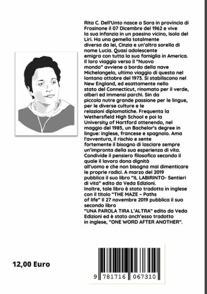 VEDA EDIZIONI Sognare è un'Arte... Sui Sogni c'è molto da dire, alcuni non possono farne a meno... aiutano a vivere non ci sono dubbi. Un giorno molto lontano la incontrai nel Capoluogo di Provincia. Aveva l'aria di chi ama Esplorare e Sognare. Fu subito Feeling. La nostra Amicizia dura ormai da tanti anni con up e down... e se poi vieni assalita dalla Malinconia che sicuramente non fa bene all'Anima, Lei è quello che ci vuole come si soul dire la giusta terapia. Riesce con la sua Spontaneità e Genuinità a portarti in un Mondo Puro dove i Sogni ci stanno benissimo. E...allora tutto passa vedrai che le mandibole ti faran-no male per il troppo ridere perché è vero che sognare porta a spasso con disinvoltura l'Amare e allora sì che grazie alla mia Amica la Vita avrà mille colori.