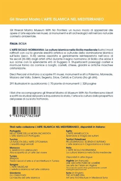 La cultura islamica nella Sicilia medievale illustra i modi raffinati con cui la grande eredità artistica e culturale della dominazione islamica sull'isola (secc. X-XI) venne assorbita e genialmente reinterpretata nell'arco di tre secoli (XI-XIII) dagli artisti attivi durante il regno normanno di Sicilia che ebbe il suo acme con la splendente età di Ruggero II. Stupefacenti paesaggi costieri e montuosi fanno da cornice a borghi, castelli, chiese, giardini e antiche moschee cristianizzate. Cinque Percorsi vi invitano a scoprire 43 musei, monumenti e siti a Palermo, Monreale, Mazara del Vallo, Salemi, Segesta, Erice, Cefalù and Catania (fra gli altri).