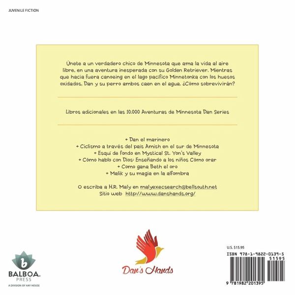 nete a un verdadero chico de Minnesota que ama la vida al aire libre, en una aventura inesperada con su Golden Retriever. Mientras que hacia fuera canoeing en el lago pacfico Minnetonka con los huesos oxidados, Dan y su perro ambos caen en el agua. Cmo sobrevivirn? Libros adicionales en las 10.000 Aventuras de Minnesota Dan Series + Dan el marinero + Ciclismo a travs del pas Amish en el sur de Minnesota + Esqu de fondo en Mystical St. Yons Valley + Cmo hablo con Dios: Enseando a los nios Cmo orar + Como gana Beth el oro + Malik y su magia en la alfombra O escriba a H.R. Maly en malyexecsearch@bellsouth.net Sitio web http://www.danshands.org