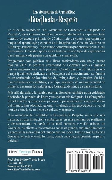 "Las Aventuras de Cachetitos: la Búsqueda de Respeto" por Jose Gutierrez Gonzalez es una historia vibrante y cautivadora que sigue a un grupo de jóvenes patinadores en Los Ángeles, conocidos como el Skate Squad, mientras navegan por los desafíos de crecer, formar amistades y buscar respeto en su comunidad. La narrativa comienza con el equipo al borde de una nueva era, transitando de la escuela primaria a la secundaria, donde enfrentan nuevos desafíos y adversarios. El respeto, aprenden, no se les entrega solo por logros académicos o proezas atléticas sino que se gana a través de la perseverancia, la fuerza de sus lazos y el coraje para defenderse. La vida del protagonista cambia cuando conoce a Torpedo, un patinador experimentado, que lo toma a él y a su amigo Jimmy bajo su ala, enseñándoles no solo las complejidades del patinaje sino también valiosas lecciones de vida. La historia está salpicada de personajes coloridos como Tara Dactyl, la mejor patinadora de la zona, y el abusón de la escuela, Bruno Sabatini, quien desafía constantemente al equipo. La narrativa también introduce otros personajes memorables, como los maestros de la escuela, que contribuyen al crecimiento y experiencias de aprendizaje de los niños, tanto dentro como fuera del aula. A medida que Cachetitos se esfuerza por mejorar sus habilidades de patinaje, también aprende a navegar las complejidades de la amistad, la competencia y enfrentar sus miedos. El culmen de su viaje es una competencia de patinaje, donde deben unirse para superar su mayor desafío hasta el momento, enfrentándose al Equipo Sabatini. A través de sus pruebas, el equipo aprende que el respeto proviene de cómo manejan sus derrotas tanto como sus victorias. El libro es un relato conmovedor de aventura, camaradería y la búsqueda del respeto. Ilustra la importancia de creer en uno mismo, el valor de la amistad y el coraje requerido para enfrentar y superar obstáculos.
