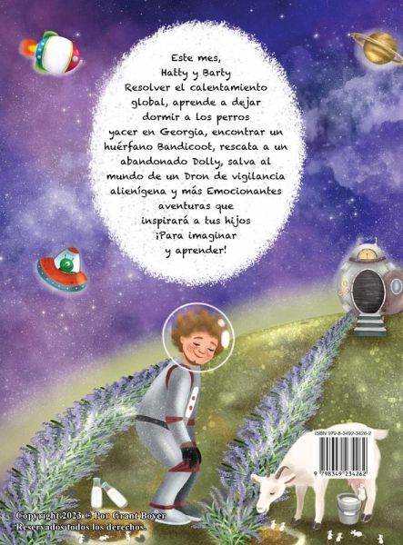 Introducción del autor Cuando mis hijos eran pequeños, les contaba cuentos antes de dormir casi todas las noches. Una tarde creé los personajes Hatty y Barty y les conté una historia sobre estos nuevos personajes ficticios. A mis dos hijos les encantó tanto esta historia que a partir de esa noche solo me dejaron contarles historias sobre Hatty y Barty. Conté estas historias de Hatty y Barty durante varios años. Fue un gran esfuerzo para mi creatividad después de un tiempo seguir generando nuevas ideas y temas de historias, pero de alguna manera siempre lo lograba y siempre disfrutaba contándoles. A veces, cuando estaba cansada, llegaba al punto crucial de la historia y luego les decía a mis hijos "continuará". Su respuesta sería "¡No papá! ¡Termina la historia!" Por lo general, no cedía y luego, a la noche siguiente, a veces me olvidaba de la historia que había comenzado la noche anterior y esto creaba una mayor consternación. Tú, lector, tienes un beneficio que mis hijos no siempre tuvieron; y es que todos los cuentos para dormir en estos libros, creados hace muchos años, tienen un final, aunque algunos todavía incluyen la infame frase "continuará". Espero que usted y sus hijos disfruten de estas historias tanto como mis hijos al escucharlas cuando eran pequeños. Grant Boyer