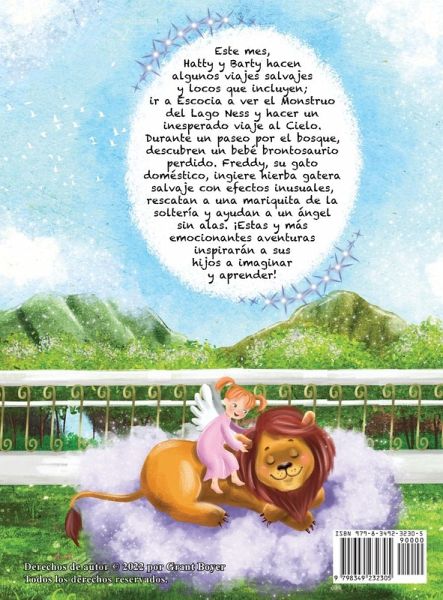 Introducción del autor Cuando mis hijos eran pequeños, les contaba cuentos antes de dormir casi todas las noches. Una tarde creé los personajes Hatty y Barty y les conté una historia sobre estos nuevos personajes ficticios. A mis dos hijos les encantó tanto esta historia que a partir de esa noche solo me dejaron contarles historias sobre Hatty y Barty. Conté estas historias de Hatty y Barty durante varios años. Fue un gran esfuerzo para mi creatividad después de un tiempo seguir generando nuevas ideas y temas de historias, pero de alguna manera siempre lo lograba y siempre disfrutaba contándoles. A veces, cuando estaba cansada, llegaba al punto crucial de la historia y luego les decía a mis hijos "continuará". Su respuesta sería "¡No papá! ¡Termina la historia!" Por lo general, no cedía y luego, a la noche siguiente, a veces me olvidaba de la historia que había comenzado la noche anterior y esto creaba una mayor consternación. Tú, lector, tienes un beneficio que mis hijos no siempre tuvieron; y es que todos los cuentos para dormir en estos libros, creados hace muchos años, tienen un final, aunque algunos todavía incluyen la infame frase "continuará". Espero que usted y sus hijos disfruten de estas historias tanto como mis hijos al escucharlas cuando eran pequeños. Grant Boyer