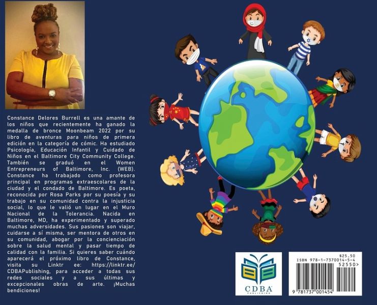 Constance Delores Burrell es una amante de los niños que recientemente ha ganado la medalla de bronce Moonbeam por su libro de aventuras para niños de primera edición en la categoría de cómic. Ha estudiado Psicología, Educación Infantil y Cuidado de Niños en el Baltimore City Community College. También se graduó en el Women Entrepreneurs of Baltimore, Inc. (WEB). Constance ha trabajado como profesora principal en programas extraescolares de la ciudad y el condado de Baltimore. Es poeta, reconocida por Rosa Parks por su poesía y su trabajo en su comunidad contra la injusticia social, lo que le valió un lugar en el Muro Nacional de la Tolerancia. Nacida en Baltimore, MD, ha experimentado y superado muchas adversidades. Sus pasiones son viajar, cuidarse a sí misma, ser mentora de otros en su comunidad, abogar por la concienciación sobre la salud mental y pasar tiempo de calidad con la familia. Si quieres saber cuándo aparecerá el próximo libro de Constance, visita su Linktr ee: https: //linktr.ee/CDBAPublishing, para acceder a todas sus redes sociales y a sus últimas y excepcionales obras de arte. ¡Muchas bendiciones!
