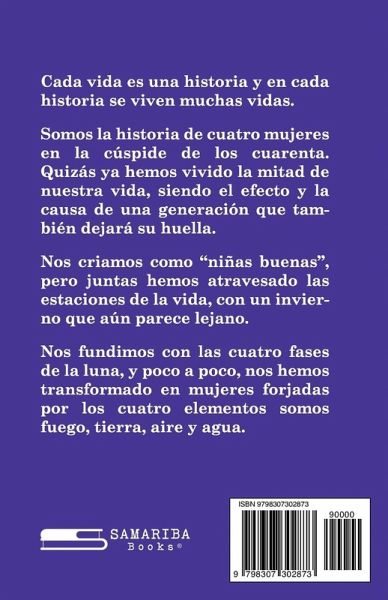 Cada vida es una historia y en cada historia se viven muchas vidas. Somos la historia de cuatro mujeres en la cúspide de los cuarenta. Quizás ya hemos vivo la mitad de nuestra vida, siendo el efecto y la causa de una generación que también dejará su huella. Nos criamos como "niñas buenas", pero juntas hemos atravesado las estaciones de la vida, con un invierno que aún parece lejano. Nos fundimos con las cuatro fases de la luna, y poco a poco, nos hemos transformado en mujeres forjadas por los cuatro elementos somos fuego, tierra, aire y agua.
