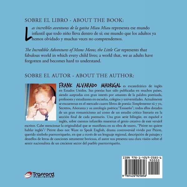 Las increíbles aventuras de la gatita Miau Miau representa ese mundo infantil que todo niño lleva dentro de sí; ese mundo que los adultos ya hemos olvidado y muchas veces no comprendemos. The incredible adventures of Miau Miau, the Little Cat represents that fabulous world in which every child lives; a world that, we as adults have forgotten and becomes hard to understand.