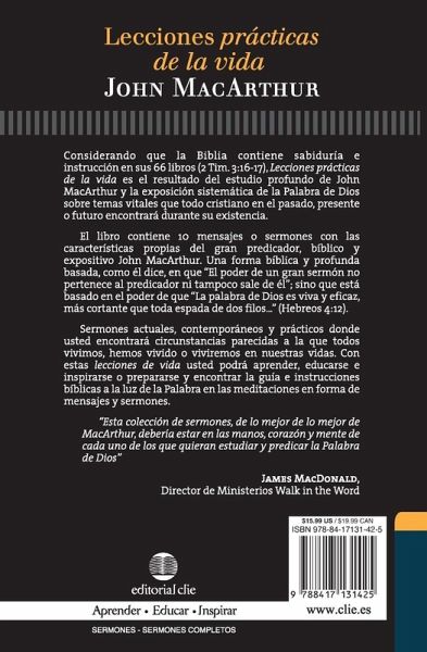 A lo largo de este libro, y utilizando ese estilo suyo tan caracter¿¿stico que aplica en sus predicaciones, John MacArthur nos hace reflexionar sobre los principales temas de nuestra vida cotidiana: Aprender de la vida cristiana Crecer en la fortaleza en Cristo Ejercer la valent¿¿a Conocer la voluntad de Dios Liberarse del pecado Buscar la sabidur¿¿a cristiana Evangelizar nuestro mundo Enfrentarse a los pecados privados Entender nuestra ambici¿¿n Usar nuestra libertad A new book about the personal and Christian growth by John MacArthur.
