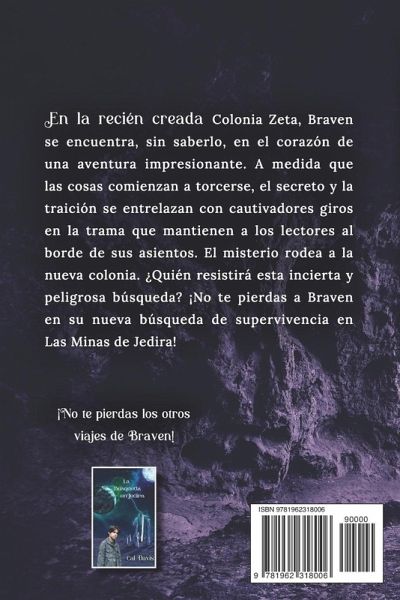 En la recién creada Colonia Zeta, Braven se encuentra, sin saberlo, en el corazón de una aventura impresionante. A medida que las cosas comienzan a torcerse, el secreto y la traición se entrelazan con cautivadores giros argumentales que mantienen a los lectores al borde de sus asientos. El misterio rodea a la nueva colonia. ¿Quién resistirá esta incierta y peligrosa búsqueda? ¡No te pierdas a Braven en su nueva búsqueda de supervivencia en Las Minas de Jedira!