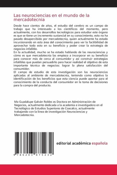 Desde hace cientos de años, el estudio del cerebro es un campo de trabajo que ha interesado a los científicos del momento, pero actualmente, con los desarrollos tecnológicos para estudiar este órgano es que se tiene un incremento sustancial en su conocimiento; esto no ha pasado desapercibido por mercadotecnia, quien actualmente ha estado incursionando en esta área del conocimiento para ver la factibilidad de aprovechar todo esto en su beneficio y poder crear la estrategia de negocios infalible.En la actualidad, mucho se ha estado hablando de las neurociencias y cómo es que mercadotecnia las empieza a incorporar en su beneficio para conocer más de cerca al consumidor y así construir estrategias infalibles que puedan persuadirlo para hacer realidad el objetivo de esta importante técnica de negocios: lograr la plena satisfacción del consumidor. El campo de estudio de esta investigación son las neurociencias aplicadas al ambiente de mercadotecnia, teniendo como objetivo la identificación de los beneficios que esta ciencia puede aportar para el conocimiento de la conducta del consumidor en la toma de decisiones para la compra del producto.