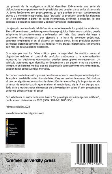 Las psicosis de la inteligencia artificial describen lúdicamente una serie de disfunciones y comportamientos imprevisibles que pueden darse en los sistemas de IA. Estos fenómenos son preocupantes, ya que pueden acarrear consecuencias graves y a menudo inesperadas. Estas "psicosis" se producen cuando los sistemas de IA se entrenan a partir de datos incompletos, erróneos o sesgados, lo que conduce a decisiones incorrectas y comportamientos inadecuados. Un ejemplo destacado de tal disfunción es el refuerzo de los prejuicios existentes. Si una IA se entrena con datos que contienen prejuicios históricos o sociales, puede adoptarlos inconscientemente y reforzarlos aún más. Esto puede dar lugar a decisiones discriminatorias, por ejemplo a la hora de conceder préstamos, contratar empleados o en el sistema de justicia penal. Estos prejuicios pueden perjudicar sistemáticamente a las minorías y los grupos marginados, cimentando aún más las desigualdades existentes. Otro ejemplo son los fallos críticos para la seguridad. En ámbitos como el diagnóstico médico, el control de vehículos autónomos o la automatización industrial, las decisiones equivocadas pueden tener graves consecuencias. Un vehículo autónomo que identifica erróneamente a un peatón y no se detiene a tiempo, o un sistema médico que no diagnostica correctamente una enfermedad, pueden tener consecuencias mortales. Reconocer y eliminar estos y otros problemas requiere un enfoque interdisciplinar. Se explican en detalle las técnicas de detección y corrección de errores. Esto incluye el uso de algoritmos avanzados de detección de anomalías y la implantación de sistemas de monitorización que analicen el rendimiento de la IA en tiempo real. Todo esto y muchos otros elementos de la investigación sobre IA son presentados de forma exhaustiva por el autor. Carl Whittaker es autor de la obra básica "La psicología de la inteligencia artificial", publicada en diciembre de 2023 (ISBN: 978-3-911075-96-1)