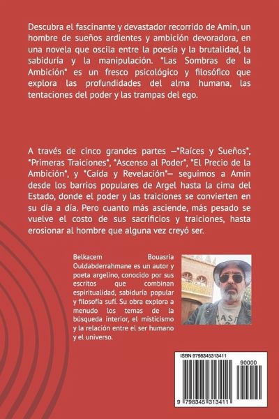 Descubra el fascinante y devastador recorrido de Amin, un hombre de sueños ardientes y ambición devoradora, en una novela que oscila entre la poesía y la brutalidad, la sabiduría y la manipulación. *Las Sombras de la Ambición* es un fresco psicológico y filosófico que explora las profundidades del alma humana, las tentaciones del poder y las trampas del ego. A través de cinco grandes partes -*Raíces y Sueños*, *Primeras Traiciones*, *Ascenso al Poder*, *El Precio de la Ambición*, y *Caída y Revelación*- seguimos a Amin desde los barrios populares de Argel hasta la cima del Estado, donde el poder y las traiciones se convierten en su día a día. Pero cuanto más asciende, más pesado se vuelve el costo de sus sacrificios y traiciones, hasta erosionar al hombre que alguna vez creyó ser. Guiado y a veces atormentado por los enigmáticos proverbios de un narrador sufí, Amin se enfrenta a dilemas morales que ponen en tela de juicio todo lo que ha construido. Cada capítulo revela una nueva faceta de su ascenso y caída, dejando entrever la sombra de su destino trágico. A medida que escala los peldaños del poder, Amin se pierde en un laberinto de espejos deformantes, donde la ambición se muestra como una fuerza tan destructiva como irresistible. En esta novela, la estructura misma de los capítulos invita a la introspección, cada título siendo una puerta abierta hacia temas como la lealtad, la traición, el ego, la humanidad y la soledad. A lo largo de la historia, el lector se ve impulsado a preguntarse: ¿hasta dónde estamos dispuestos a llegar para alcanzar nuestros sueños? ¿Y qué queda de nosotros cuando la ambición lo ha consumido todo? Entre la filosofía sufí y un realismo implacable, *Las Sombras de la Ambición* lo invita a sumergirse en una exploración oscura y cautivadora de la condición humana, donde las decisiones del individuo, incluso las más sutiles, forjan su destino. Esta novela es mucho más que una simple historia de ascenso y caída; es una profunda meditación sobre el precio de la ambición, sobre las ilusiones del poder, y sobre la libertad interior que a veces solo se encuentra... en la propia caída. Una novela hipnótica y llena de sabiduría, que sabrá cautivar a aquellos que se atrevan a enfrentarse a las sombras de su propia ambición. *Las Sombras de la Ambición* lo espera, para un viaje al corazón de los deseos más oscuros del alma humana y de las fragilidades que nos hacen humanos.