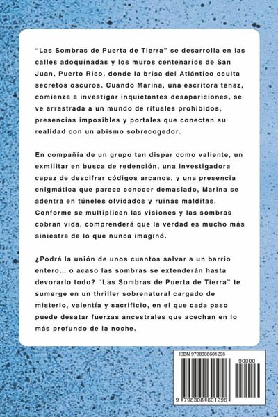 Las Sombras de Puerta de Tierra te invita a recorrer las callejuelas y murallas centenarias de San Juan, Puerto Rico, donde la brisa salada esconde revelaciones más inquietantes de lo que la razón puede admitir. Cuando Marina, una escritora tenaz, decide investigar un patrón de desapariciones inexplicables, se adentra en un laberinto de rituales prohibidos, portales ancestrales y sombras vivientes que amenazan con engullir la ciudad. Acompañada por un exmilitar atormentado, una investigadora experta en códigos enigmáticos y un personaje cuya sabiduría roza lo sobrenatural, Marina explora túneles olvidados y ruinas cargadas de un pasado que parece latir bajo cada adoquín. Conforme las visiones se multiplican y las fuerzas oscuras se manifiestan en cada esquina, se hace evidente que la ciencia y las creencias chocan ante un mismo enigma: la existencia de una realidad que desborda lo explicable. ¿Logrará este grupo de valientes frustrar el avance de lo inexplicable, o sucumbirán ante el poder de lo desconocido? Entre sacrificios y una creciente tensión, Las Sombras de Puerta de Tierra despliega un thriller sobrenatural cargado de coraje, pesadillas y la esperanza frágil de quienes resisten. Cada paso en la noche podría desatar fuerzas ancestrales que, desde las profundidades, acechan para devorarlo todo.