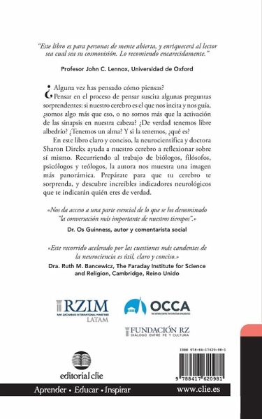 Sharon Dirckx en ¿¿Soy solo un cerebro? explica c¿¿mo la investigaci¿¿n moderna est¿¿ descubriendo cada vez m¿¿s detalles de lo que es nuestro cerebro y c¿¿mo funciona. Estamos viviendo, pensando en criaturas que llevan con nosotros una incre¿¿ble supercomputadora org¿¿nica en nuestras cabezas. Pero, ¿¿cü¿l es la relaci¿¿n entre nuestro cerebro y nuestra mente, y en ¿¿ltima instancia, nuestro sentido de identidad como persona? ¿¿Somos m¿¿s que m¿¿quinas? ¿¿Es el libre albedr¿¿o una ilusi¿¿n? ¿¿Tenemos un alma? La investigadora de im¿¿genes cerebrales Sharon Dirckx expone la comprensi¿¿n actual de qui¿¿nes somos de bi¿¿logos, fil¿¿sofos, te¿¿logos y psic¿¿logos, y se¿¿ala una imagen m¿¿s amplia que sugiere respuestas a las preguntas fundamentales de nuestra existencia. No solo "¿¿qü¿ soy?", sino "¿¿qui¿¿n soy?" y "¿¿por qü¿ soy?" Lea este libro para obtener informaci¿¿n valiosa sobre lo que la investigaci¿¿n moderna nos dice acerca de nosotros mismos, o para desafiar a un amigo esc¿¿ptico con la idea de que somos meramente seres materiales que viven en un mundo material. Am I Just My Brain? Sharon Dirckx in Am I Just My Brain? Explain how Modern research is uncovering more and more detail of what our brain is and how it works. We are living, thinking creatures who carry around with us an amazing organic supercomputer in our heads. But what is the relationship between our brains and our minds--and ultimately our sense of identity as a person? Are we more than machines? Is free-will an illusion? Do we have a soul? Brain Imaging Scientist Sharon Dirckx lays out the current understanding of who we are from biologists, philosophers, theologians and psychologists, and points towards a bigger picture that suggests answers to the fundamental questions of our existence. Not just "What am I?", but "Who am I?"--and "Why am I?" Read this book to gain valuable insight into what modern research is telling us about ourselves, or to give a skeptical friend to challenge the idea that we are merely material beings living in a material world.