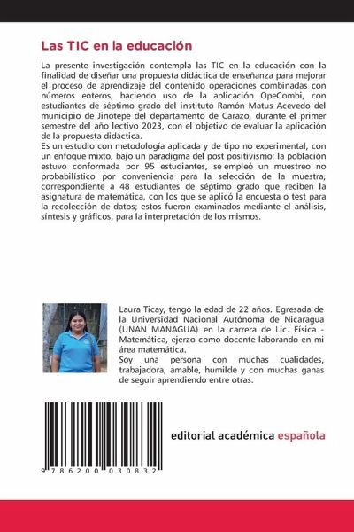 La presente investigación contempla las TIC en la educación con la finalidad de diseñar una propuesta didáctica de enseñanza para mejorar el proceso de aprendizaje del contenido operaciones combinadas con números enteros, haciendo uso de la aplicación OpeCombi, con estudiantes de séptimo grado del instituto Ramón Matus Acevedo del municipio de Jinotepe del departamento de Carazo, durante el primer semestre del año lectivo 2023, con el objetivo de evaluar la aplicación de la propuesta didáctica.Es un estudio con metodología aplicada y de tipo no experimental, con un enfoque mixto, bajo un paradigma del post positivismo; la población estuvo conformada por 95 estudiantes, se empleó un muestreo no probabilístico por conveniencia para la selección de la muestra, correspondiente a 48 estudiantes de séptimo grado que reciben la asignatura de matemática, con los que se aplicó la encuesta o test para la recolección de datos; estos fueron examinados mediante el análisis, síntesis y gráficos, para la interpretación de los mismos.