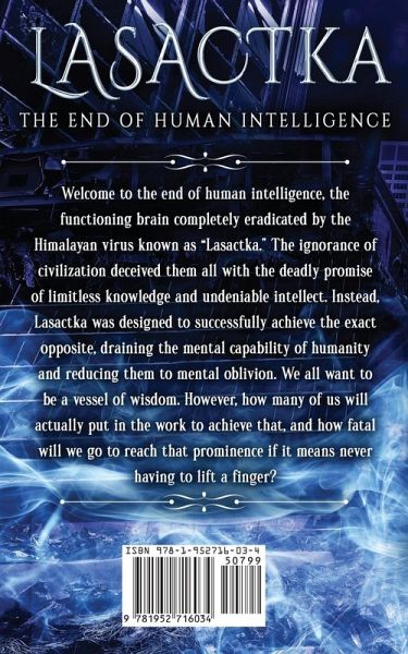 Welcome to the end of human intelligence, the functioning brain completely eradicated by the Himalayan virus known as "Lasactka". The ignorance of civilization deceived them all with the deadly promise of limitless knowledge and undeniable intellect. Instead, Lasactka was designed to successfully achieve the exact opposite, draining the mental capability of humanity and reducing them to mental oblivion. We all want to be a vessel of wisdom. However, how many of us will actually put in the work to achieve that, and how fatal will we go to reach that prominence if it means never having to lift a finger?