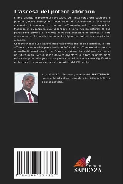 Il libro analizza in profondità l'evoluzione dell'Africa verso una posizione di potenza globale emergente. Dopo secoli di colonialismo e dipendenza economica, il continente si sta ora riaffermando sulla scena mondiale. Mettendo in evidenza le sue abbondanti e varie risorse naturali, la sua popolazione giovane e dinamica e le sue economie in crescita, il libro analizza come l'Africa stia cercando di svolgere un ruolo centrale negli affari mondiali.Concentrandosi sugli aspetti della trasformazione socio-economica, il libro affronta anche le sfide persistenti che l'Africa deve affrontare ed esplora le promettenti opportunità future. Offre una visione chiara del percorso verso un futuro in cui l'Africa possa davvero diventare un attore di primo piano nello sviluppo e nella governance globale, contribuendo in modo significativo a plasmare il panorama economico e politico del XXI secolo.