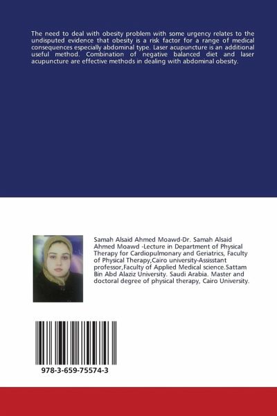 The need to deal with obesity problem with some urgency relates to the undisputed evidence that obesity is a risk factor for a range of medical consequences especially abdominal type. Laser acupuncture is an additional useful method. Combination of negative balanced diet and laser acupuncture are effective methods in dealing with abdominal obesity.