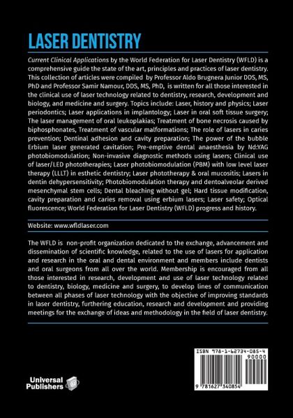 Laser Dentistry: Current Clinical Applications by the World Federation for Laser Dentistry (WFLD) is a comprehensive guide the state of the art, principles and practices of laser dentistry. This collection of articles were compiled by Professor Aldo Brugnera Junior DDS, MS, PhD and Professor Samir Namour, DDS, MS, PhD, is written for all those interested in the clinical use of laser technology related to dentistry, research, development and biology, and medicine and surgery. Topics include: Laser, history and physics; Laser periodontics; Laser applications in implantology; Laser in oral soft tissue surgery; The laser management of oral leukoplakias; Treatment of bone necrosis caused by biphosphonates, Treatment of vascular malformations; The role of lasers in caries prevention; Dentinal adhesion and cavity preparation; The power of the bubble Erbium laser generated cavitation; Pre-emptive dental anaesthesia by Nd:YAG photobiomodulation; Non-invasive diagnostic methods using lasers; Clinical use of laser/LED phototherapies; Laser photobiomodulation (PBM) with low level laser therapy (LLLT) in esthetic dentistry; Laser phototherapy & oral mucositis; Lasers in dentin dehypersensitivity; Photobiomodulation therapy and dentoalveolar derived mesenchymal stem cells; Dental bleaching without gel; Hard tissue modification, cavity preparation and caries removal using erbium lasers; Laser safety; Optical fluorescence; World Federation for Laser Dentistry (WFLD) progress and history.