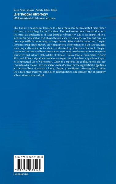 This book is a continuous learning tool for experienced technical staff facing laser vibrometry technology for the first time. The book covers both theoretical aspects and practical applications of laser Doppler vibrometry, and is accompanied by a multimedia presentation that allows the audience to browse the content and come as close as possible to performing real experiments. After a brief introduction, Chapter 2 presents supporting theory, providing general information on light sources, light scattering and interference for a better understanding of the rest of the book. Chapter 3 examines the theory of laser vibrometers, explaining interferometers from an optical perspective and in terms of the related electronics. It also addresses options like tracking filters and different signal demodulation strategies, since these have a significant impact on the practical use of vibrometers. Chapter 4 explores the configurations that are encountered in today's instrumentation, with a focuson providing practical suggestions on the use of laser vibrometers. Lastly, Chapter 5 investigates metrology for vibration and shock measurements using laser interferometry, and analyses the uncertainty of laser vibrometers in depth.