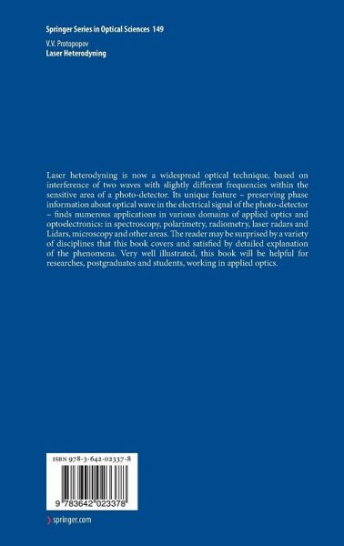 Laser heterodyning is now a widespread optical technique, based on interference of two waves with slightly different frequencies within the sensitive area of a photo-detector. Its unique feature - preserving phase information about optical wave in the electrical signal of the photo-detector - finds numerous applications in various domains of applied optics and optoelectronics: in spectroscopy, polarimetry, radiometry, laser radars and lidars, microscopy and other areas. The reader may be surprised by the variety of disciplines that this book covers and satisfied by detailed explanation of the phenomena. Very well illustrated, this book will be helpful for researches, postgraduates and students, working in applied optics.