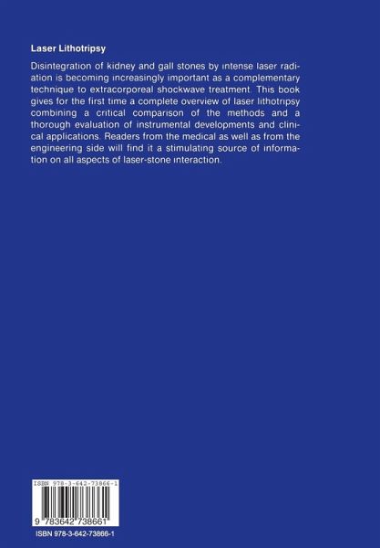 Disintegration of kidney and gall stones by intense laser radiation is becoming increasingly important as a complementary technique to extracorporeal shockwave treatment. This book gives for the first time a complete overview of laser lithotripsy combining a critical comparison of the methods and a thorough evaluation of instrumental developments and clinical applications. Readers from the medical as well as from the engineering side will find it a stimulating source of information on all aspects of laser-stone interaction.