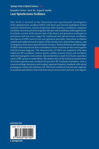 This book is devoted to the theoretical and experimental investigation of the optoelectronic oscillator (OEO) with direct and external modulation of laser emission. Such devices, sources of precision radio frequency oscillations using laser excitation, are novel and technologically relevant, with manifold possible applications. The book includes a review of the present state of the theory and generation techniques in microwave and mm-wave ranges for traditional and optoelectronic oscillators, description of OEO construction and operation principles, theoretical oscillation analysis and mathematical description of the relevant semi-classical laser physics, and investigation of the power spectral density of noises. Technical features and advantages of OEOs with external and direct modulation of laser emission are discussed together with functional diagrams. The characteristics of OEOs are compared with other traditional RF oscillators, such as quartz, surface acoustic waves, and oscillators with electromagnetic wave cavities. Special attention is paid to Q-factors and phase noises of RF carriers at small offsets. The authors discuss the technical characteristics of modern optoelectronic methods for precision RF oscillation formation, such as commercial large-dimension and compact quantum frequency standards with optical pumping on cesium and rubidium cells. This book is aimed at scientists and engineers in academia and industry who work with sources of microwave and mm-wave signals.