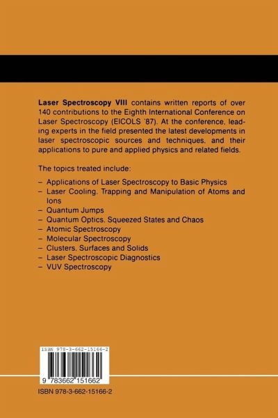 The Eighth International Conference on Laser Spectroscopy (EICOLS '87) was held at the Sunwing Hotel in A.re, Sweden, June 22-26; 1987. Fol lowing the traditions ef its predecessors at Vail, Megeve, Jackson Lake, Rottach-Egern, Jasper Park, Interlaken and Maui the intent of EICOLS '87 was to provide a forum for active scientists to meet in an informal at mosphere to discuss recent developments in laser spectroscopy. The scenic and remote location of the conference venue greatly stimulated a lively and relaxed exchange of information and ideas. The conference was attended by 227 scientists from 20 countries includ ing Australia, Austria, Canada, the People's Republic of China, Denmark, Finland, France, the Federal Repulic of Germany, Israel, Italy, Japan, The Netherlands, New Zealand, Norway, Poland, the Soviet Union, Sweden, Switzerland, the United Kingdom and the United States. The scientific program included 14 topical sessions with 50 invited talks, ranging in length from 20 to 40 minutes. About 70 additional in vited contributions were presented in two evening poster sessions. A third evening session included 4 oral and 18 poster post-deadline presentations.