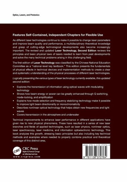 As different laser technologies continue to make it possible to change laser parameters and improve beam quality and performance, a multidisciplinary theoretical knowledge and grasp of cutting-edge technological developments also become increasingly important. The revised and updated Laser Technology, Second Edition reviews the principles and basic physical laws of lasers needed to learn from past developments and solve the many technical problems arising in this challenging field.