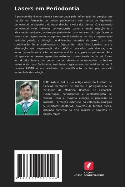 A periodontite é uma doença caracterizada pela inflamação da gengiva que resulta na formação de bolsas periodontais com perda do ligamento periodontal de suporte e do osso alveolar à volta dos dentes. O tratamento periodontal inclui métodos convencionais como a destartarização e o alisamento radicular, a cirurgia periodontal com ou sem cirurgia óssea e novas abordagens como os agentes condicionadores da raiz, a regeneração tecidular guiada, a utilização de diferentes materiais de enxerto e a sua combinação. Os procedimentos cirúrgicos têm sido direccionados para a eliminação e/ou regeneração dos defeitos causados pela doença, mas estes procedimentos são demorados e dolorosos para os pacientes. Para ultrapassar as desvantagens dos métodos convencionais de bisturi, foram introduzidos lasers que podem cortar, ablacionar e remodelar os tecidos moles orais mais facilmente, sem hemorragia ou com um mínimo de dor. A palavra LASER é um acrónimo de amplificação da luz por emissão estimulada de radiação.