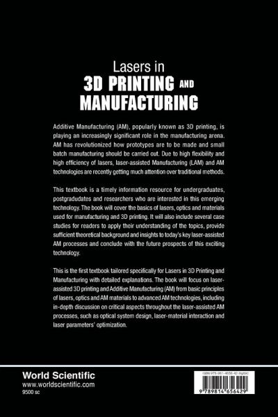 Additive Manufacturing (AM), popularly known as 3D printing, is playing an increasingly significant role in the manufacturing arena. AM has revolutionized how prototypes are to be made and small batch manufacturing should be carried out. Due to high flexibility and high efficiency of lasers, laser-assisted Manufacturing (LAM) and AM technologies are recently getting much attention over traditional methods. This textbook is a timely information resource for undergraduates, postgraduates and researchers who are interested in this emerging technology. The book will cover the basics of lasers, optics and materials used for manufacturing and 3D printing. It will also include several case studies for readers to apply their understanding of the topics, provide sufficient theoretical background and insights to today's key laser-assisted AM processes and conclude with the future prospects of this exciting technology. This is the first textbook tailored specifically for Lasers in 3D Printing and Manufacturing with detailed explanations. The book will focus on laser-assisted 3D printing and Additive Manufacturing (AM) from basic principles of lasers, optics and AM materials to advanced AM technologies, including in-depth discussion on critical aspects throughout the laser-assisted AM processes, such as optical system design, laser-material interaction and laser parameters' optimization.