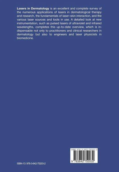 Lasers in Dermatology presents an excellent and complete survey of the numerous applications of lasers in dermatological therapy and research, the fundamentals of laser-skin interaction, and the various laser sources and tools in use. A comprehensive outlook to new instrumentation, such as pulsed lasers of ultraviolet and infrared wavelengths, completes this up-to-date overview, which is indispensable not only to practitioners and clinical researchers in dermatology but also to engineers and laser physicists in biomedicine.