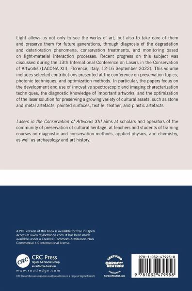 This volume includes selected contributions presented at the13th International Conference on Lasers in the Conservation of Artworks (LACONA XIII, Florence, Italy, 12-16 September 2022) on preservation topics, photonic techniques, and optimization methods.