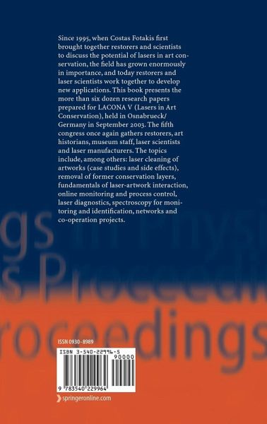 Since 1995, when Costas Fotakis first brought together restorers and scientists to discuss the potential of lasers in art conservation, the field has grown enormously in importance, and today restorers and laser scientists work together to develop new applications. This book presents the more than six dozen research papers prepared for LACONA V (Lasers in Art Conservation), held in Osnabrueck/Germany in September 2003. The fifth congress once again gathered restorers, art historians, museum staff, laser scientists and laser manufacturers. The topics include, among others: laser cleaning of artworks (case studies and side effects), removal of former conservation layers, fundamentals of laser-artwork interaction, online monitoring and process control, laser diagnostics, spectroscopy for monitoring and identification, networks and cooperation projects.