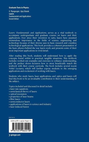 Ever since their invention in 1960, lasers have assumed tremendous importance in the fields of science, engineering and technology because of their use both in basic research and in various technological applications. Lasers: Theory and Applications 2nd Edition will provide a coherent presentation of the basic physics behind the working of the laser along with some of their most important applications. Numerical examples are scattered throughout the book for helping the student gain a better appreciation of the concepts and problems at the end of each chapter and provides the student a better…mehr